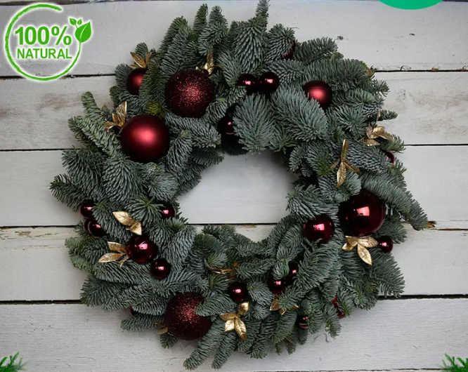 Венок новогодний рождественский "Зимняя вишня" 30 см