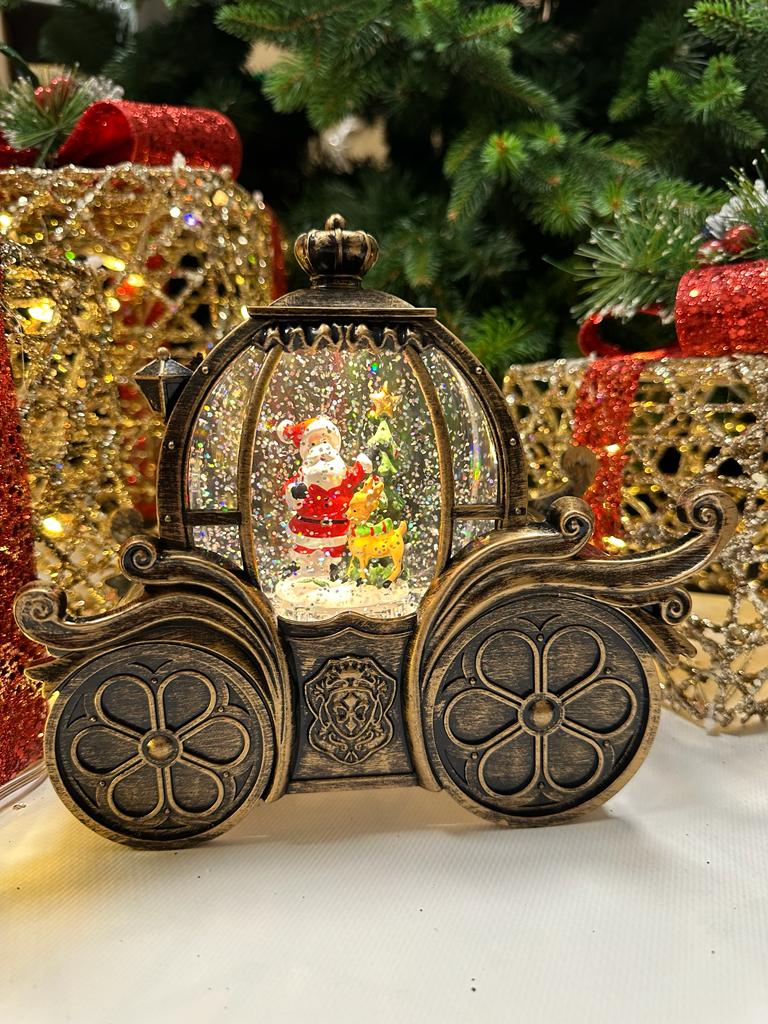 Новогодний фонарь и светильник "Санта Карета" с метелью и новогодней музыкой